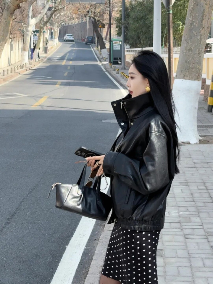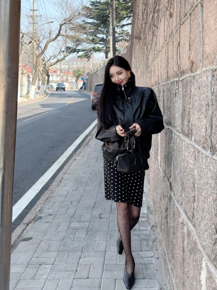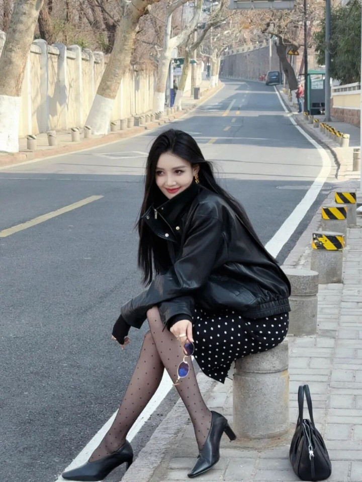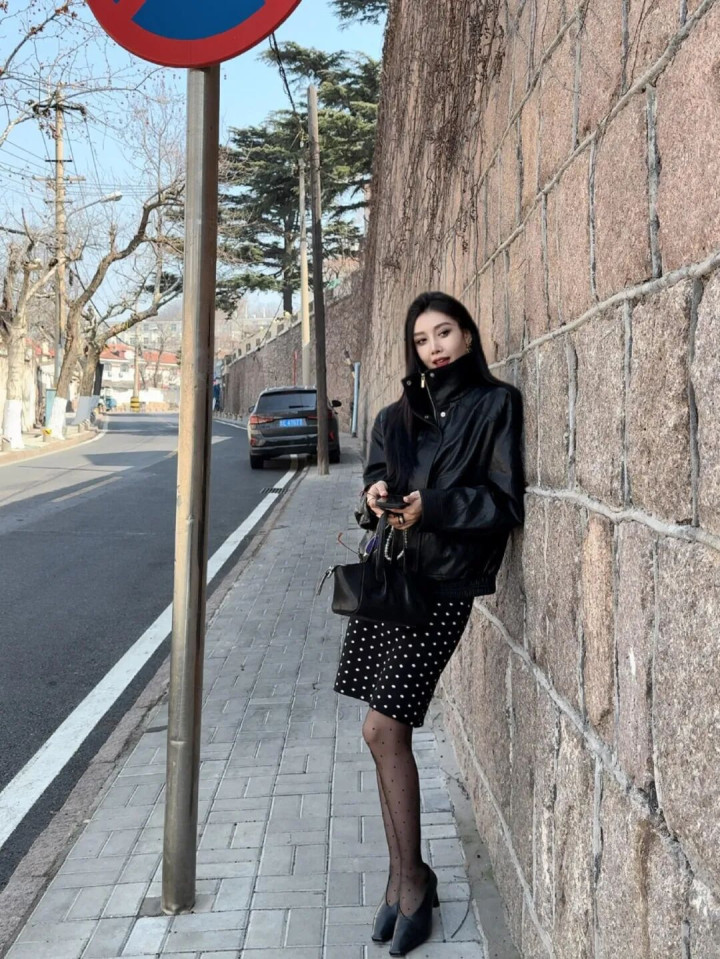 OD体育app 皮衣搭配波点, 好意思而不俗